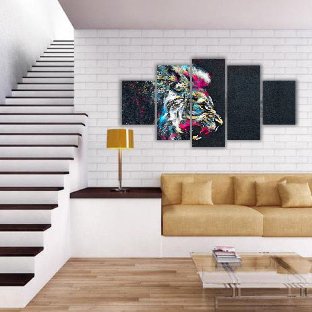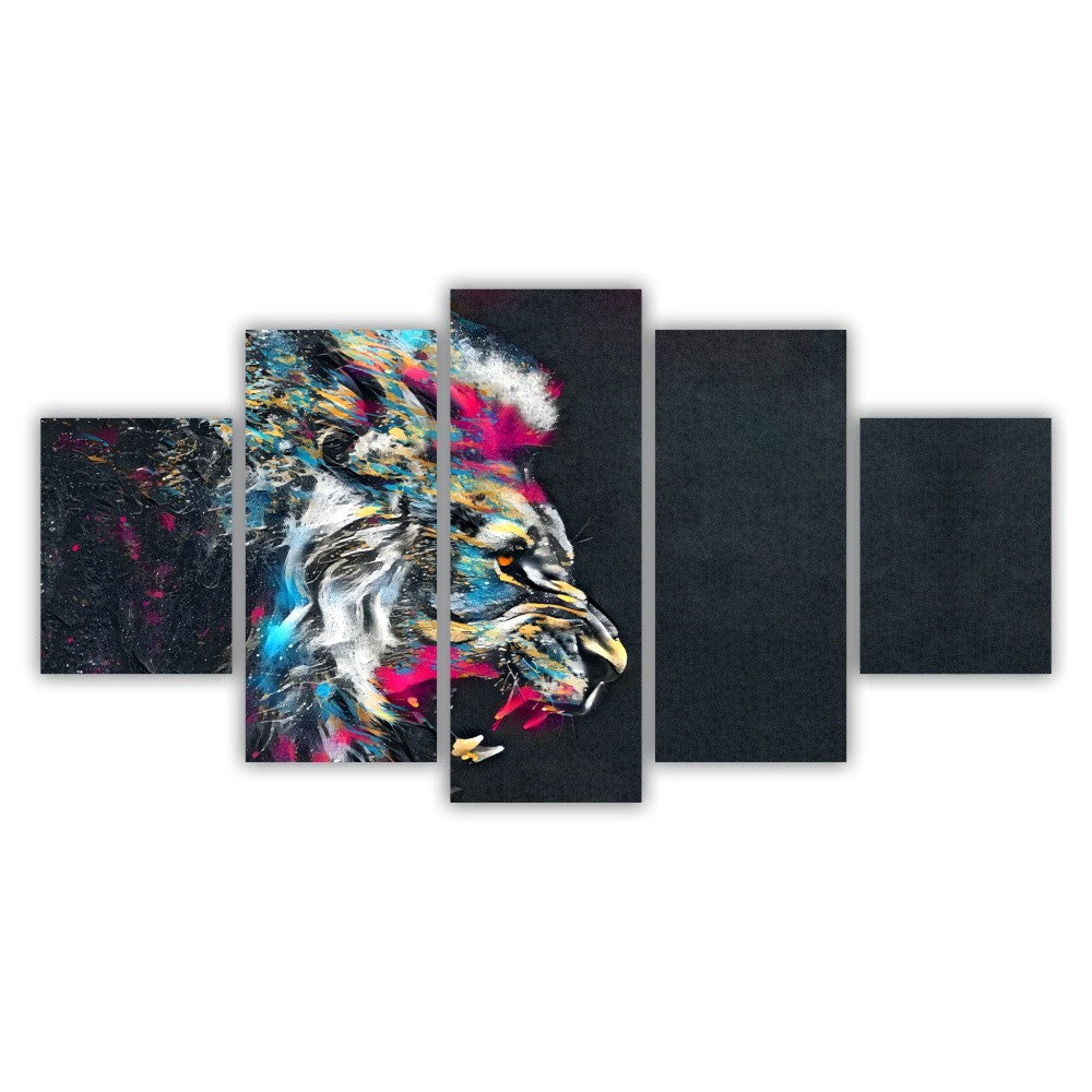 Quadro decorativo Aquarela Leão colorido Feroz