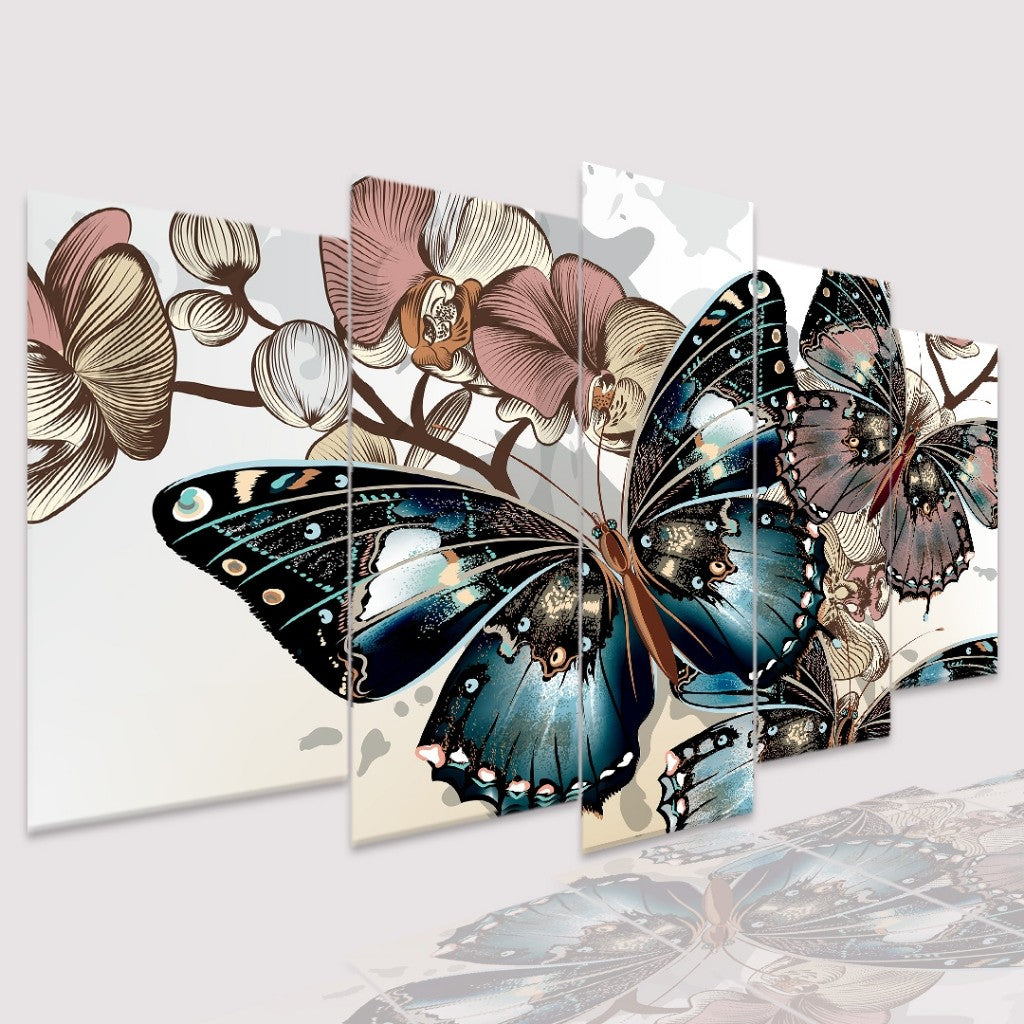 Quadro Decorativo Mosaico Borboletas Rose e Azul