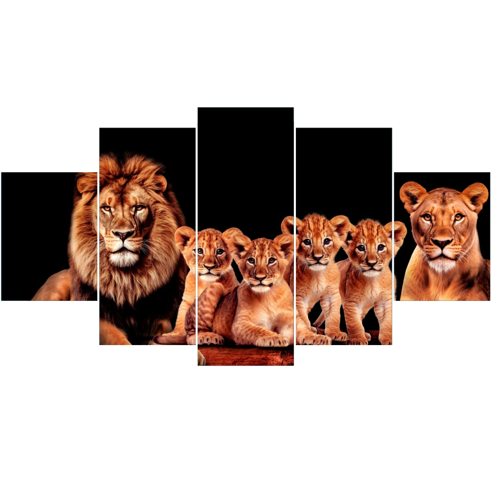 Quadro Decorativo Mosaico Leões com 4 Filhotes