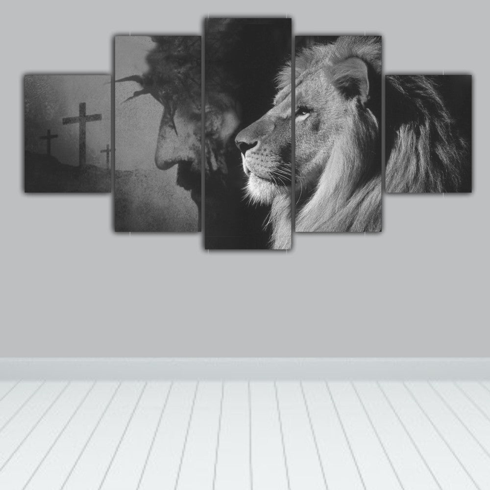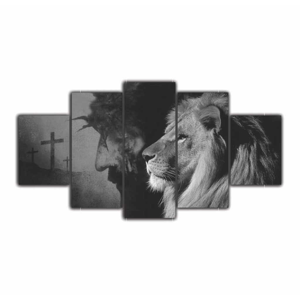 Quadros Decorativos Leão Juda E Jesus Cristo + Cruz Preto e Branco