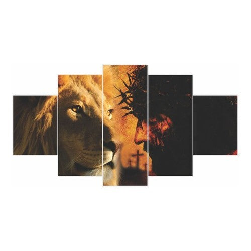 Quadros Decorativos Mosaico Leão Judá Cristo + Cruz Centro