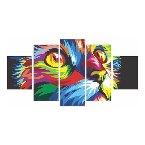 Quadros Decorativos Mosaico Mdf Gato Colorido 115x60cm