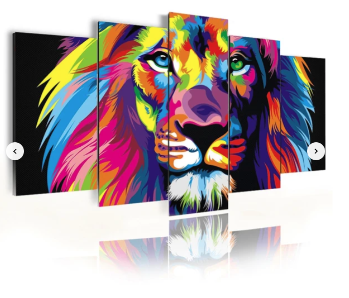 Quadros Decorativos Mosaico MDF Leão Colorido
